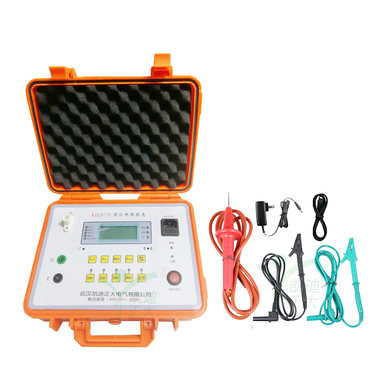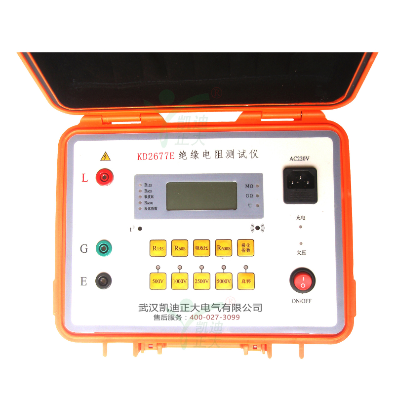 KD2677E高壓絕緣搖表是根據(jù)絕緣電阻測量的基本要求,采用較新電子電路設(shè)計而成的,其基本原理是采用電壓、電流法測量被測物的電阻值:R=V/I。機內(nèi)的存儲、運算電路使本機可自動測量吸收比(R1min/R15s)和極化指數(shù)(R10min/R1min)。