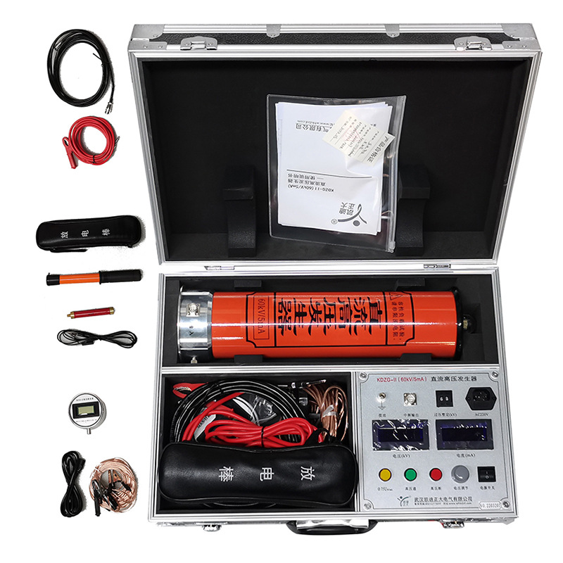 KDZG-II 60KVA5mA直流高壓發生器是根據中國電力行業標準DL/T848.1-2004《直流高壓發生器通用技術條件》設計制造的新一代便攜式直流高壓發生器。主要適用于電力部門、工礦、冶金、鋼鐵等企業動力部門對氧化鋅避雷器、電力電纜、變壓器、發電機等高壓電氣設備進行直流耐壓試驗。