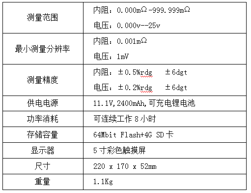 凱迪正大KDZD818蓄電池內(nèi)阻測試儀技術(shù)參數(shù):