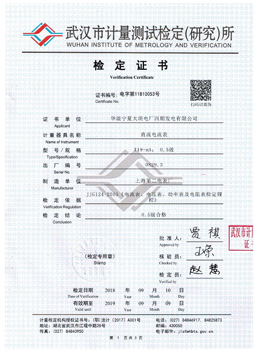 證書單位:華能寧夏大壩電廠四期發電有限公司