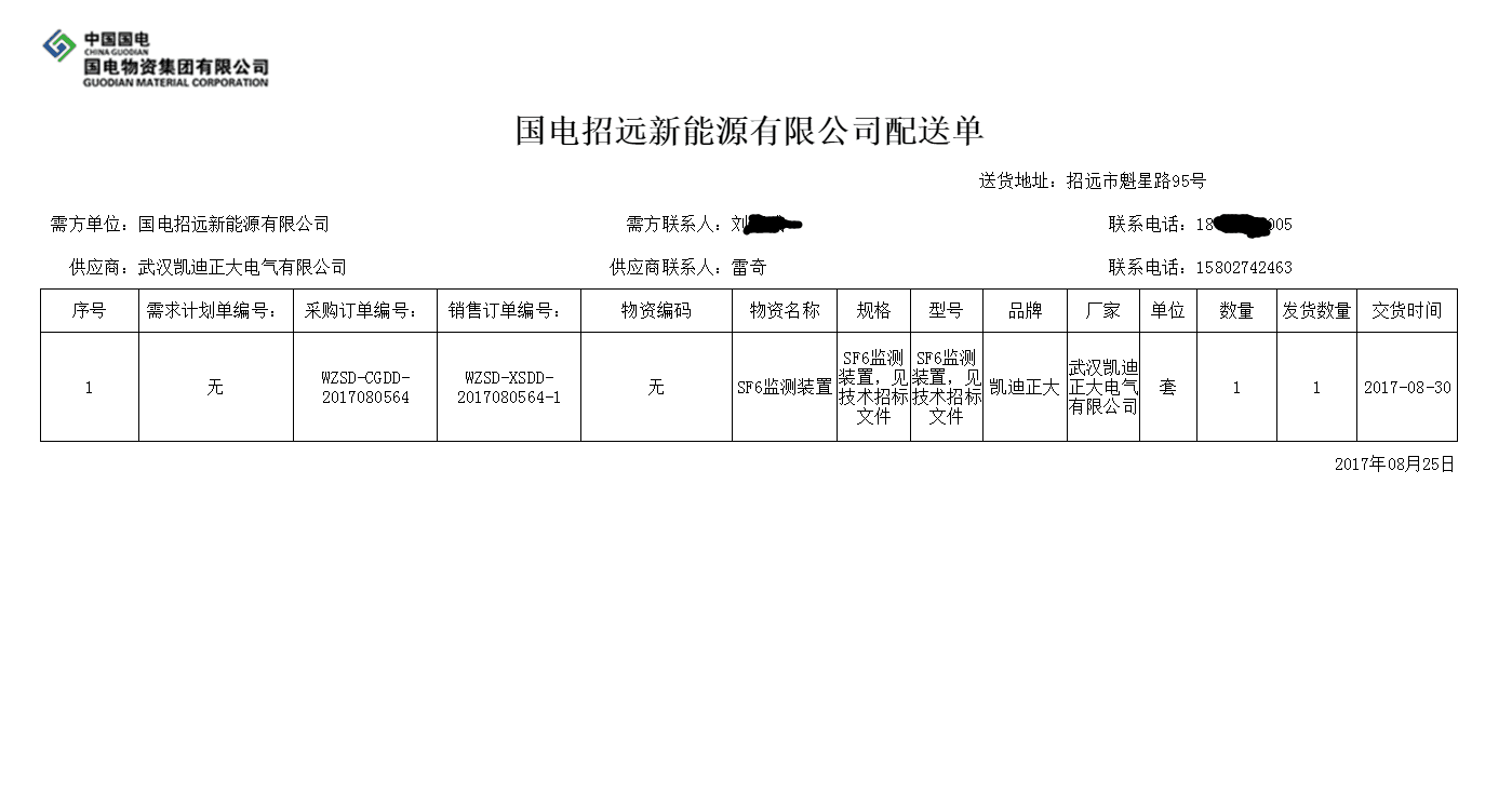 近期江城持續高溫,酷暑難耐。但絲毫沒有影響凱迪正大同仁的工作熱情,八月中旬,凱迪正大在國電招遠新能源有限公司《35KV配電室加裝SF6監測裝置項目》招標采購中,憑借著良好的市場信譽,可靠的產品質量成功拿下此標的。詢價單編號:WZSD-2017080285