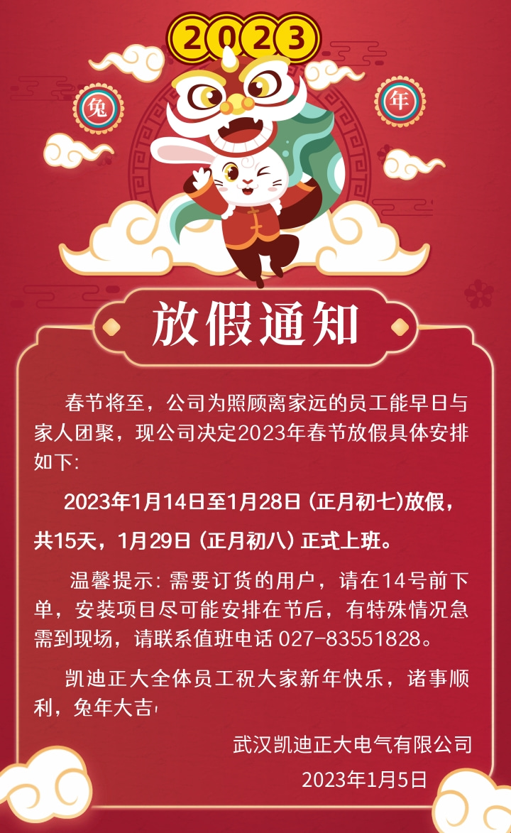2023年武漢凱迪正大春節(jié)放假通知