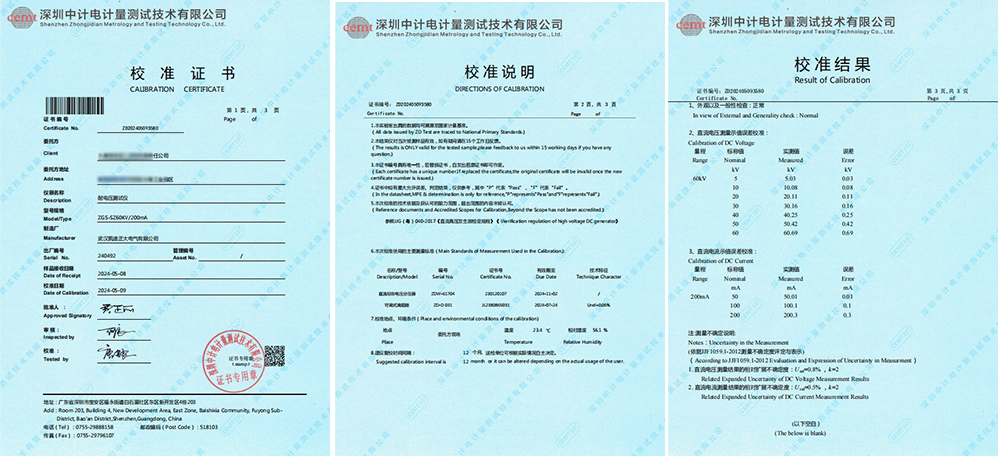 近日,陜西省寶雞市某發(fā)電有限責(zé)任公司訂購的武漢凱迪正大電氣有限公司的發(fā)電機轉(zhuǎn)子交流阻抗測試儀與ZGS-SZ60kV/200mA水內(nèi)冷發(fā)電機耐電壓測試儀,成功通過了深圳中計電計量測試技術(shù)有限公司的嚴(yán)格校準(zhǔn),并榮獲校準(zhǔn)證書。