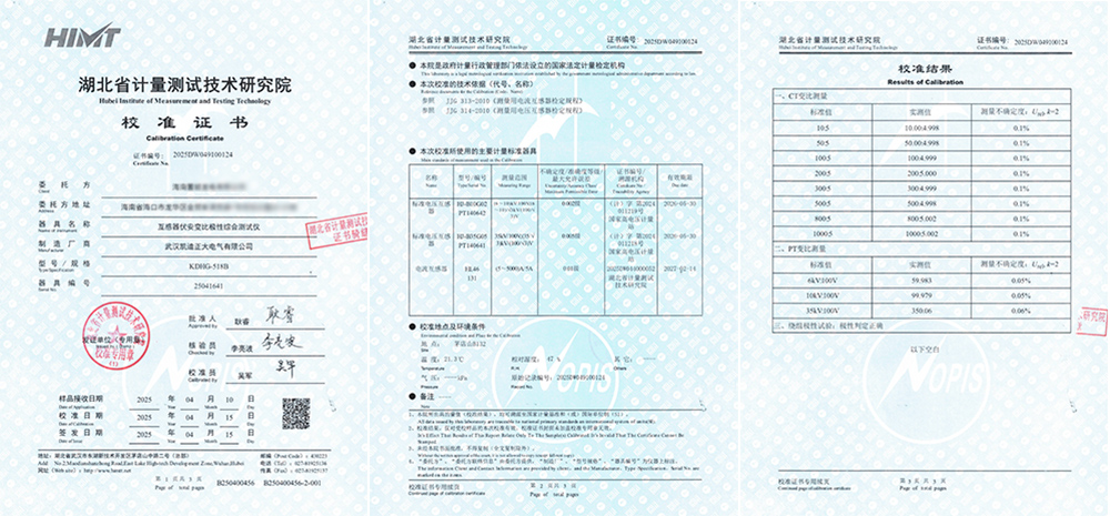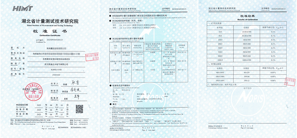 兩套設(shè)備均通過精度、重復(fù)性及穩(wěn)定性測試,同步獲得校準(zhǔn)證書(證書編號:2025DW049100124;2025DW049100123)。此次雙機(jī)全項(xiàng)達(dá)標(biāo)不僅印證了武漢凱迪正大產(chǎn)品的可靠品質(zhì),更彰顯了海南客戶在電力檢測裝備選型中的精準(zhǔn)判斷,為深化長期合作奠定了堅(jiān)實(shí)互信基礎(chǔ)。