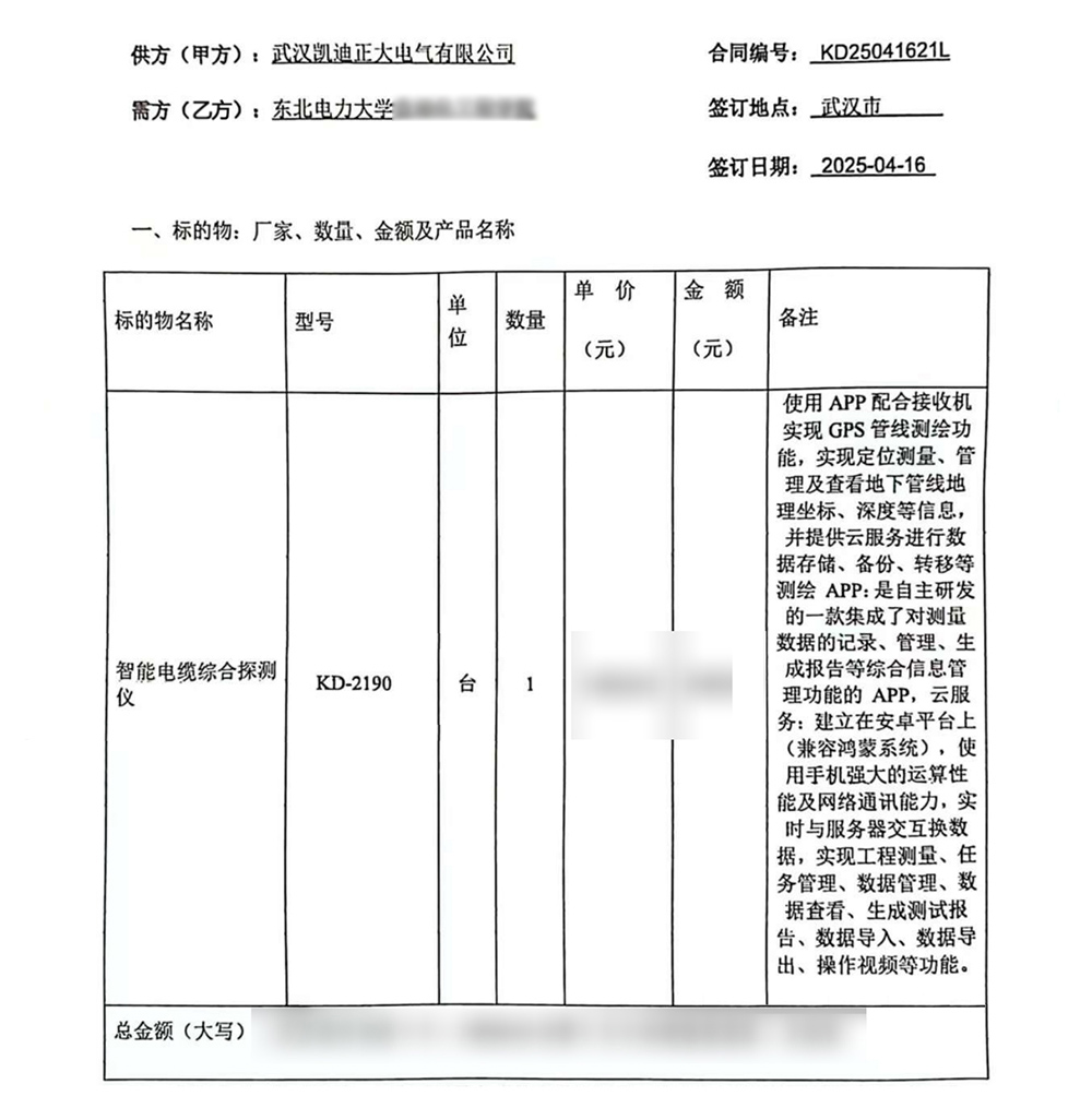 在眾多供應商中,東北電力大學最終選擇了武漢凱迪正大電氣。這一選擇背后,是對武漢凱迪正大電氣多年來在電力行業積累的技術實力的認可,更是對其產品在實際應用中所展現出的可靠性、效率的信賴。武漢凱迪正大電氣以其專業的服務團隊、完善的售后保障以及KD-2190智能電纜綜合探測儀的性能,贏得了東北電力大學的青睞與信任。